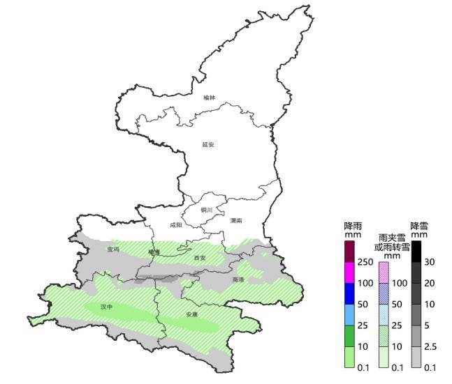 预计1月30日(初二)至2月1日(初四),大范围雨雪天气过程将影响我省奥运会足球比赛。雨雪天气主要发生在30日(初二)午后至31日(初三)白天。陕北有小到中雪(0.5~3毫米),关中有中到大雪(4~8毫米),秦巴山区、商洛北部有大雪(5~10毫米),局地暴雪(10~15毫米),陕南中西部有小雨(1~8毫米)。