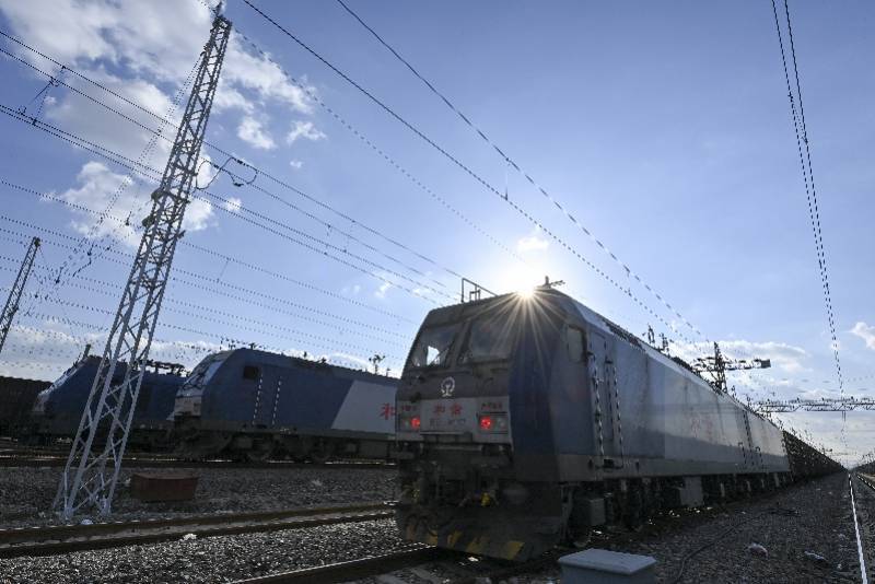 装满煤炭的重载列车在大秦铁路湖东站二场编组之后准备发车如何代理皇冠信用。新华社发