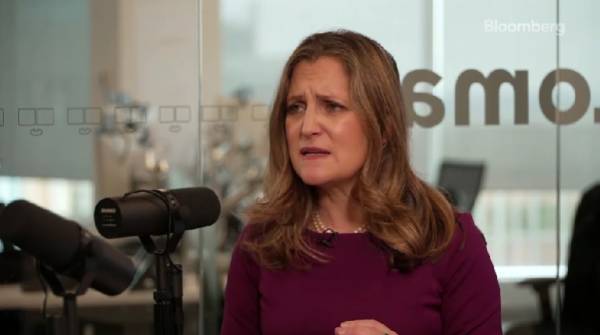 加拿大前副总理兼财政部长克里斯蒂娅·弗里兰皇冠信用网注册。彭博社视频截图