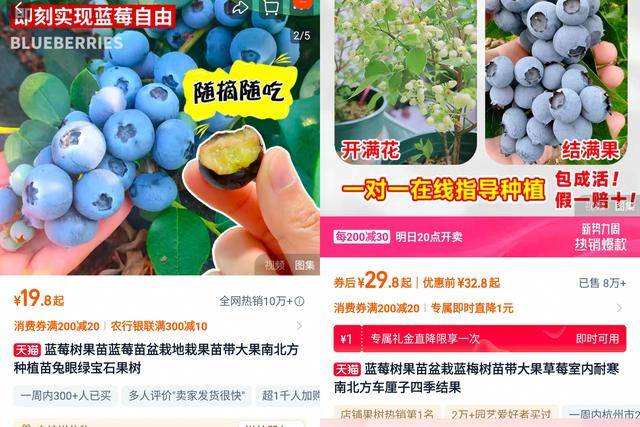 最早的时候,蓝莓发货是带土打包,用塑料袋捆扎严实,直到这两年,植物蔬果开始盆栽化hga030怎么获取账号 。从去年开始,李先生的店铺升级了发货配置,开始用盆栽的方式售卖蓝莓果苗。盆栽蓝莓戳中了网友们的蓝莓心思,之后销量明显提高。
