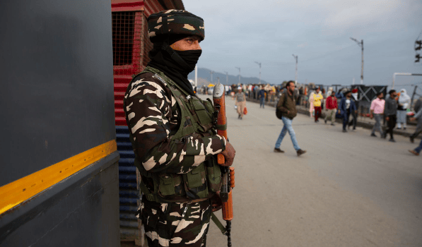 印度军人在印控克什米尔斯利那加街头执勤(资料图)