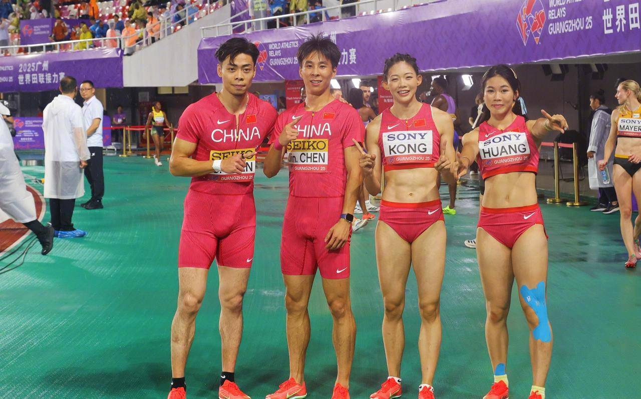 新入选奥运会的男女混合4×100米接力项目,黄淑萍、孔玲瑶、陈锦丰、陈冠锋(从右至左)代表中国队出战并晋级决赛皇冠信用网代理注册 。赛事组委会供图