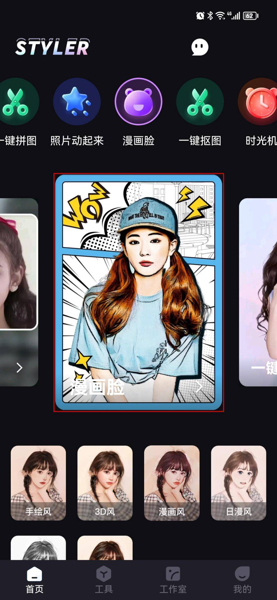 步骤一:在手机上打开Styler软件的“漫画脸”功能界面皇冠信用网怎么弄。然后从相册中选择一张人像照片。