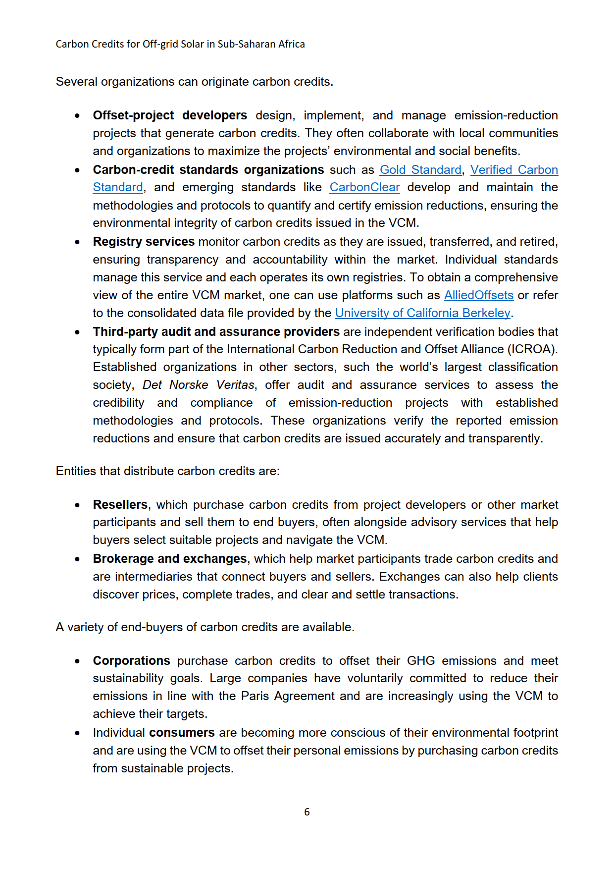 本文为热衷于探索自愿碳市场的离网太阳能公司提供了见解皇冠信用网APP下载。该文件以Power Africa和CarbonClear向两家离网公司提供的碳信用额技术援助为基础。该资源还借鉴了CarbonClear与20多家太阳能公司合作的经验,以评估实施碳信用计划的机会和风险。通过关注撒哈拉以南非洲地区,本文研究了太阳能公司面临的一些障碍,并探讨了有效的碳信用策略,以成功地驾驭这个市场。