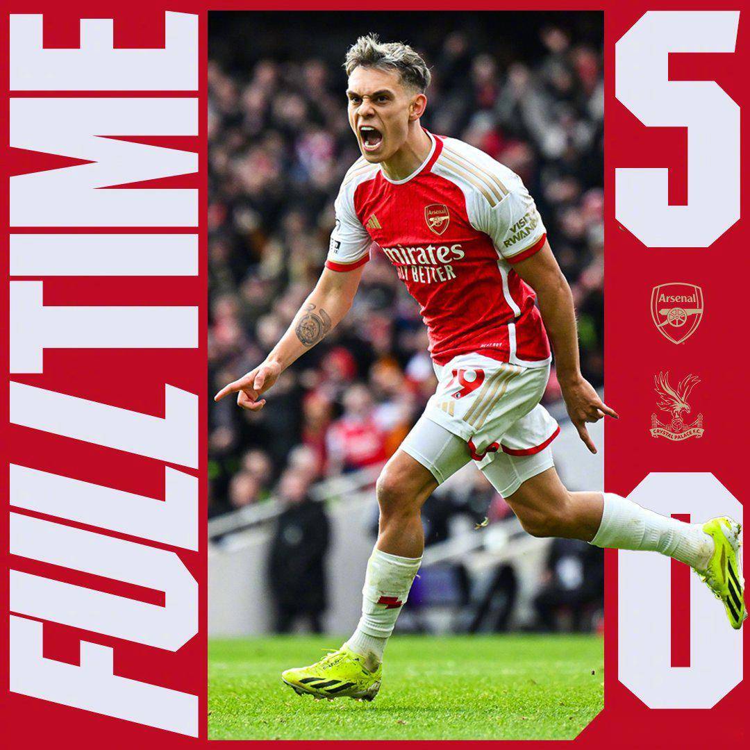 全场比赛结束,阿森纳5-0战胜水晶宫阿森纳足球直播。