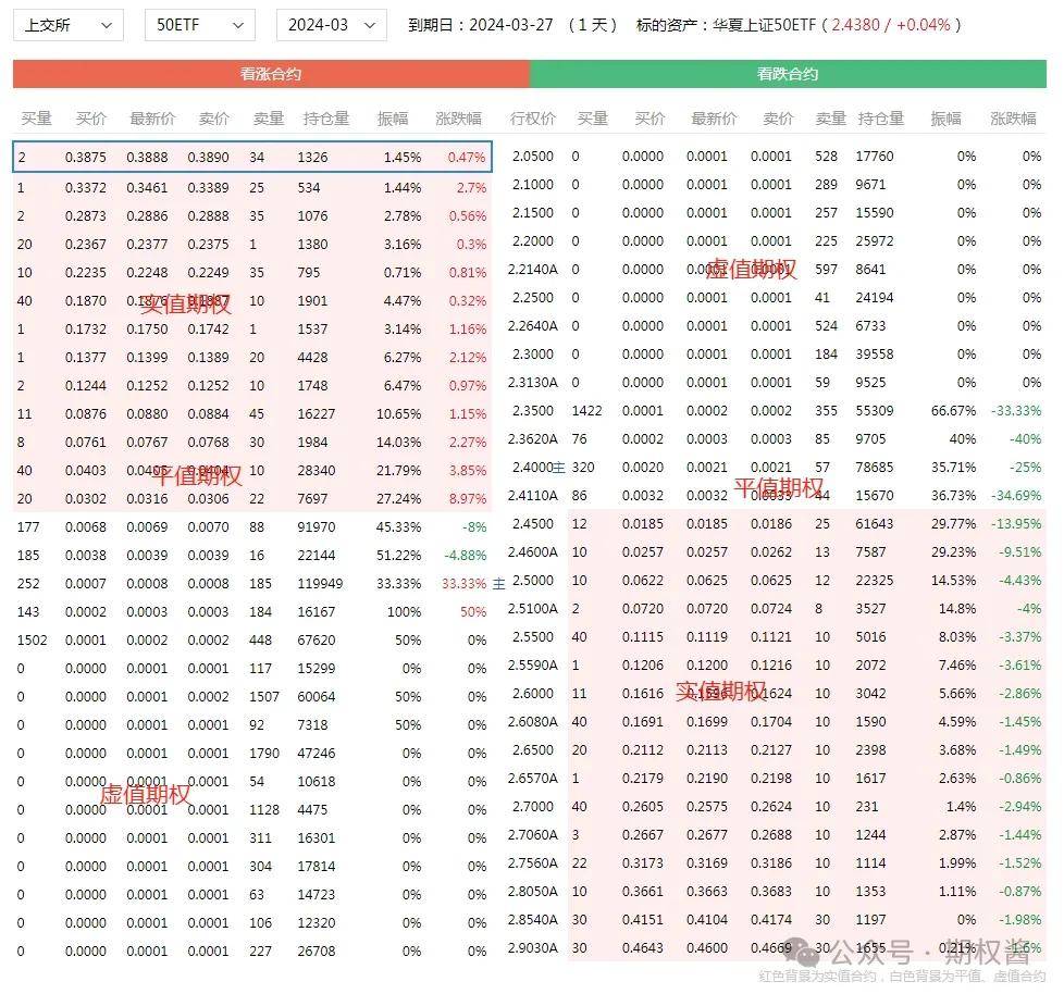 在报价栏的左边,属于看涨期权法甲联赛在哪里看。平值期权以上属于实值期权,平值期权以下属于虚值期权。看跌期权则反之。可以看出,越是实值期权,权利金价格越高,权利金的波动也越接近期货价格的波动。