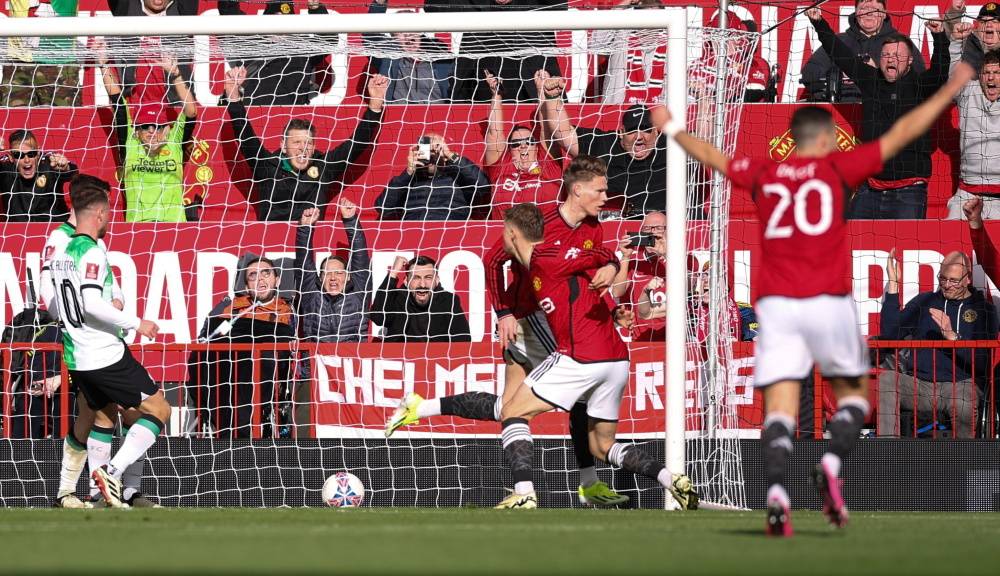 3月17日,曼彻斯特联队球员麦克托米奈庆祝攻入球队首球英格兰足总杯。新华社/欧新